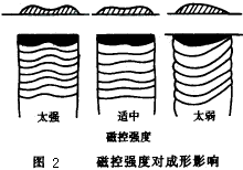 1)磁控裝置。隨著焊速的提高,焊接電流也要相應增加,則磁收縮力就會成平方倍的增加,咬邊會更嚴重,故必須加大磁控電流,但磁控電流過大,勵磁繞組發熱嚴重,降低使用壽命。為了在較低磁控電流下,增加磁控效果,應采取相應措施。如有時研究采用帶有一定角度可轉動的磁極端頭和附加磁極極靴等措施,收到了較好的效果。