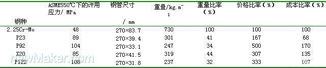 表1 2.25Cr-Mo、P91鋼經濟性比較
